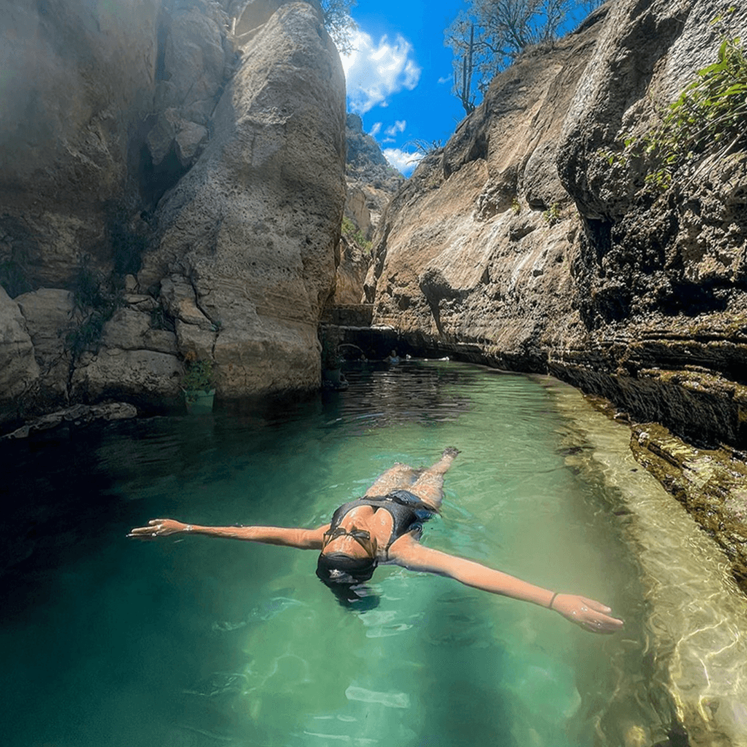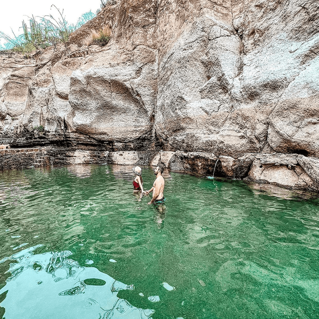 🚌 Transporte en camioneta turísticos. 💦Acceso a los manantiales 🌊 Visita las pozas 🚶♀️ Recorrido eco-turístico 🤠coordinador de grupo 🏥 Seguro de viajero (a bordo de transporte).